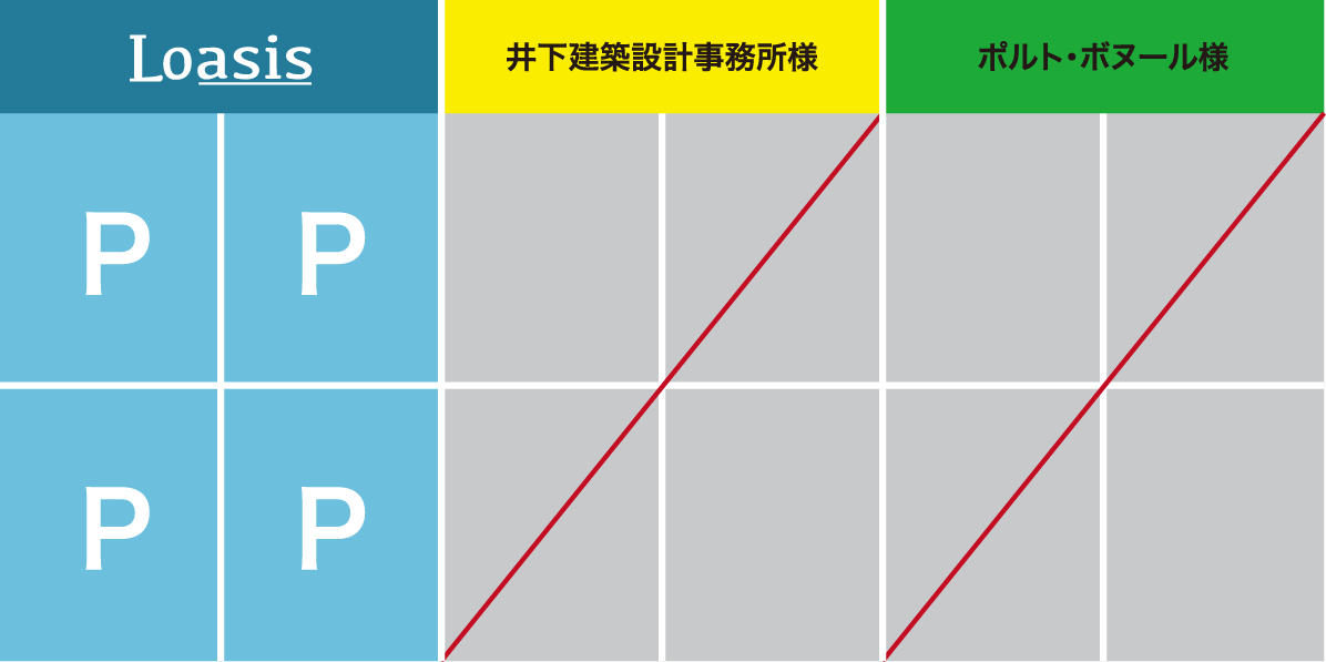 店舗前に縦列で4台分ございます。奥に停めてしまうと出られなくなることがありますので、手前の2台分をご利用ください。